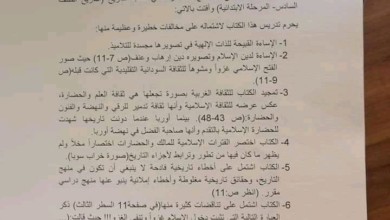 أصدر مجمع الفقه الإسلامي السوداني فتوى بتحريم تدريس كتاب التاريخ للصف السادس لاشتماله على مخالفات اعتبرها المجمع خطيرة وذلك بتجسيدها…